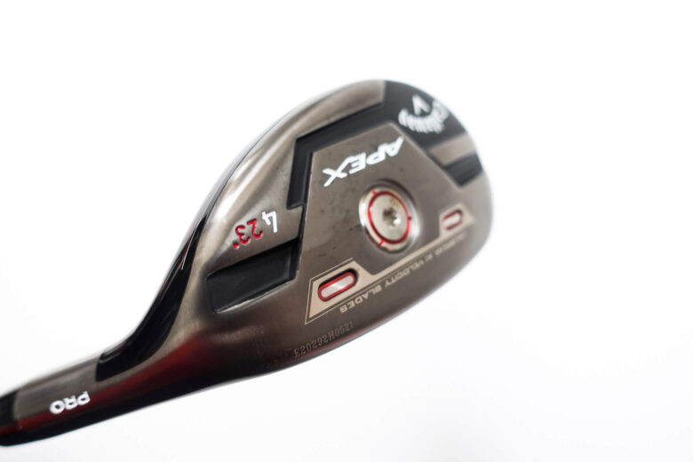 対してAPEX PROユーティリティはというと、同じ4番だけど、ロフト角が23°。寝ている方なので、飛距離的には少し物足りない感じになりました。飛びに関してはロフトなりという感じで、特別飛ぶこともないし、飛ばないこともないといった感じ