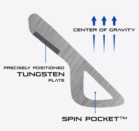 ヘッド内部の中空構造を拡大し、余剰重量をヘッド上部に再配置する設計です。前作からスピンポケットが25%大きくなったことで、重心位置がさらに高くなり、打ち出し角の低下とスピン量の増加を両立しています。
