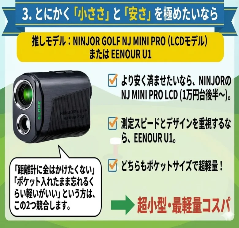推しモデル:NINJOR GOLF NJ MINI PRO(LCDモデル) または EENOUR U1