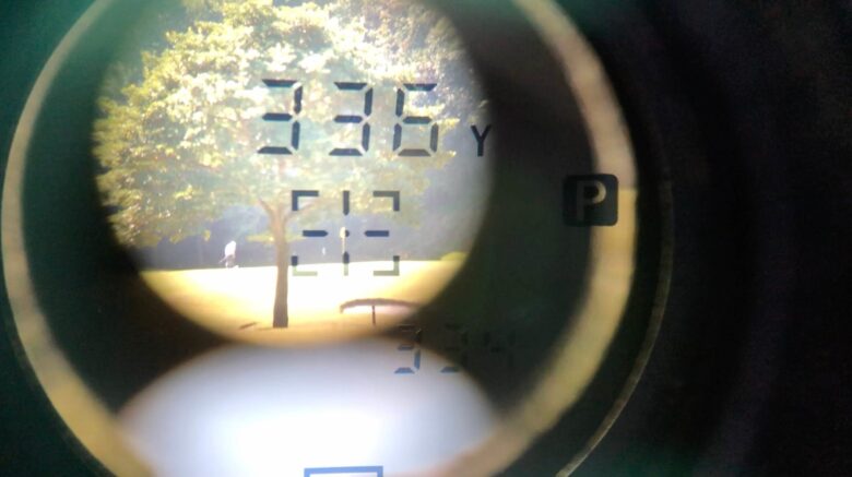 ピンモードは近い目標物を優先的に計測するので、上の画像のようにピンよりも手前に木があると木を優先して計測を行います