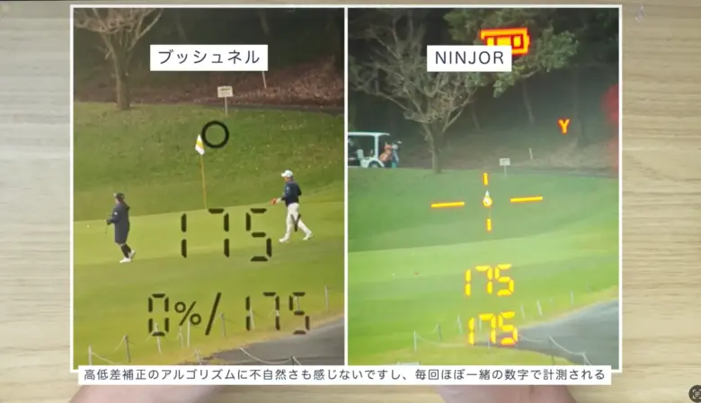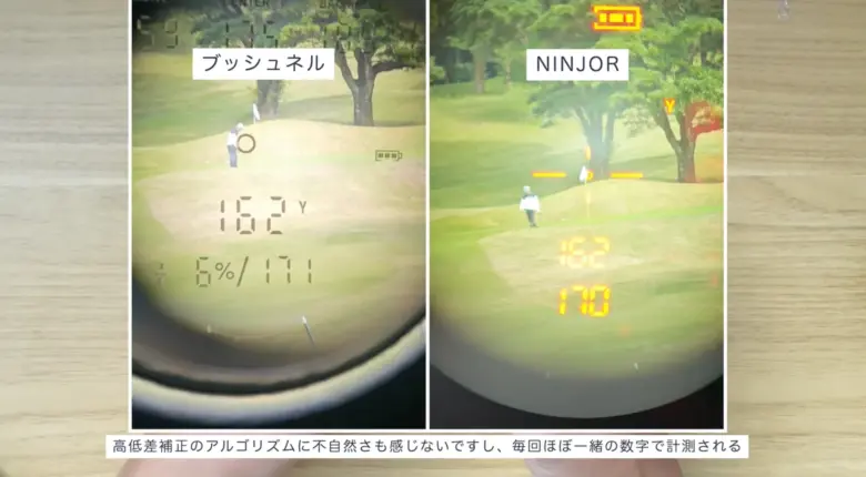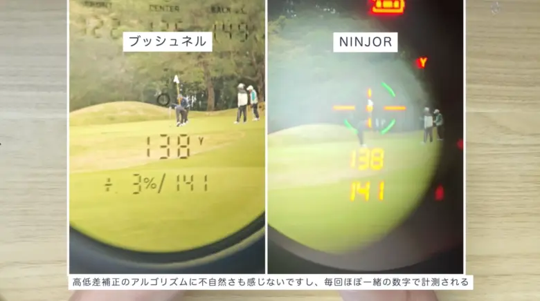 今回もいつもどおりブッシュネルとの精度比較は行っています。