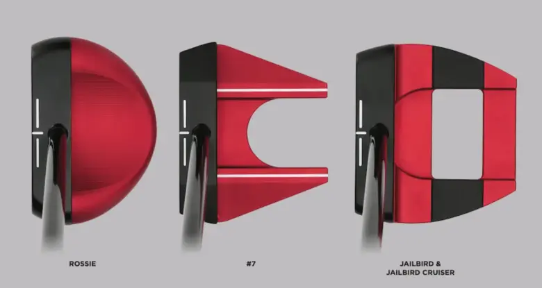 ヘッドは3種類展開されます。定番のROSSIE、#7、に加えて人気のジェイルバードがラインナップされます。今作の大きな特徴はシャフトの位置と装着方法です。