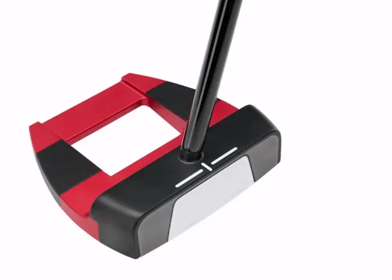 そこで、オデッセイはSquare 2 Square TRI-HOTパターで、ゼロトルクでありながらもシャフトを真っすぐに装着するように改良。さらにシャフトの装着位置もフェースに近い位置にしていることで、限りなく違和感を排除するように設計してきました。パッと見はよくあるセンターシャフトのパターとほぼ同じ印象を受けます。
