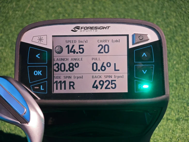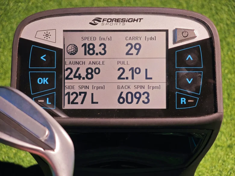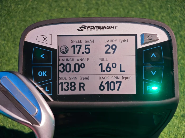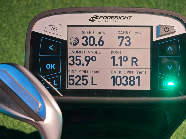 60ヤード以上で、1万回転以上のスピンが余裕で入ります。特別な打ち方は不要、ノーマルに振っただけで激スピン。控えめに言ってもかなりスピンがかかると感じています!