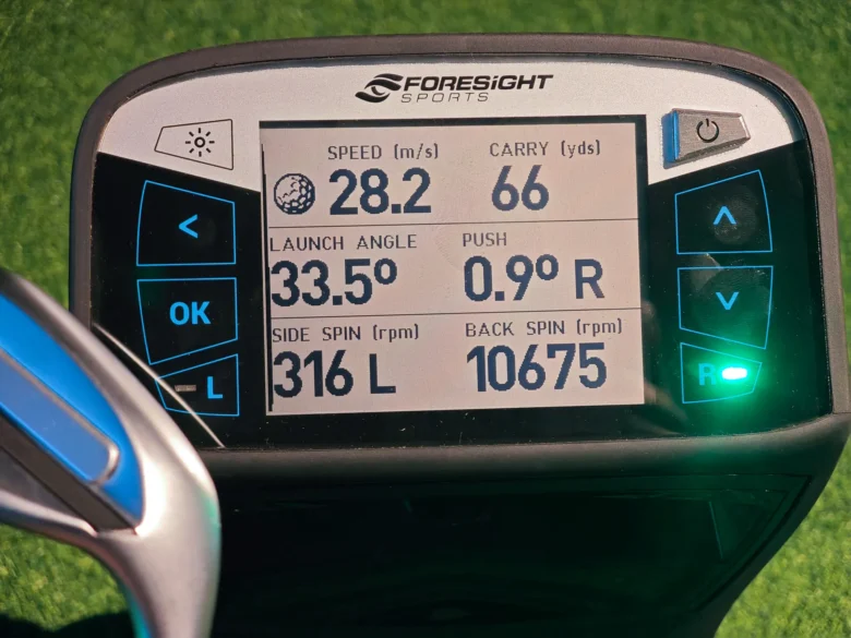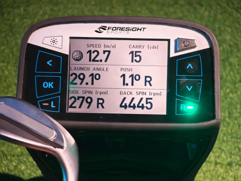 先に結論から言うと、フルショットでバックスピン平均10,555rpm。数字もすごいですが、本当の強みはライが悪くても水分を含んでもスピンが落ちないこと。