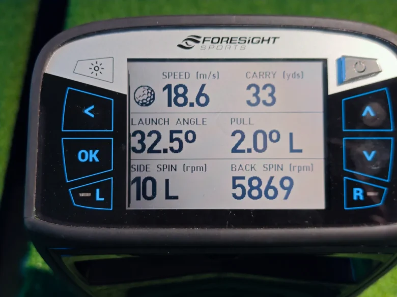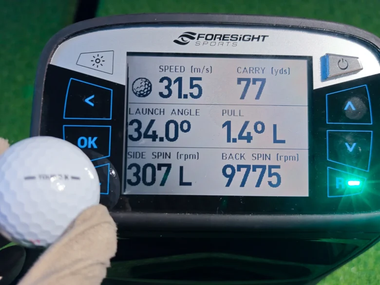 | フルショット① | 31.5 m/s | 77 yd | 34.0° | 9775 rpm |